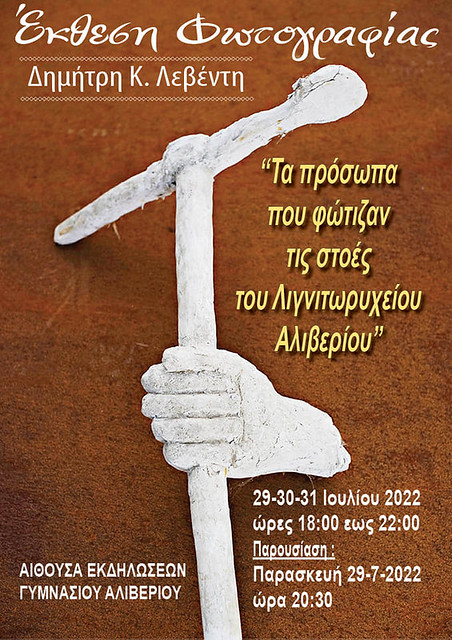 ...κι έρχεται τελικά η στιγμή που έλεγα δεν θα φθάσει ποτέ....η πρώτη μου ατομική έκθεση φωτογραφίας....η ιδέα γεννήθηκε πρίν 4 χρόνια, η υλοποίηση ξεκίνησε πρίν 2.5 περίπου με την ανεύρεση τών προσώπων αλλά η άσχημη περίοδος που βιώσαμε όλοι - και συνεχίζεται ακόμη - με τον κορωνοϊό δημιούργησε μια μεγάλη καθυστέρηση στην παρουσίαση του θέματος....οι φωτογραφιζομενοι είναι άνθρωποι που εργάστηκαν αποκλειστικά στον χώρο του Λιγνιτωρυχείου Αλιβερίου και τα πορτραίτα που θα παρουσιαστούν αποτυπώθηκαν στο σημείο ακριβώς που δούλευαν ανάλογα με την ειδικότητα τους...η ηλικία τους κυμαίνεται από 75 έως 94 χρονών και γι αυτό η όλη διαδικασία της μεταφοράς και φωτογράφησης στον τόπο αυτό έπρεπε να γίνει με απόλυτο σεβασμό και προσοχή τόσο για την υγεία τους αλλά και για την προσωπικότητα τους... είναι ένα πρώτο έργο που θέλω να προσφέρω στον τόπο μου αποτυπώνοντας φωτογραφικά το ιστορικό αλλά εγκαταλελειμμένο παρελθόν σε συνδυασμό με τα πρόσωπα του σήμερα....