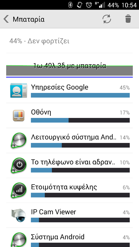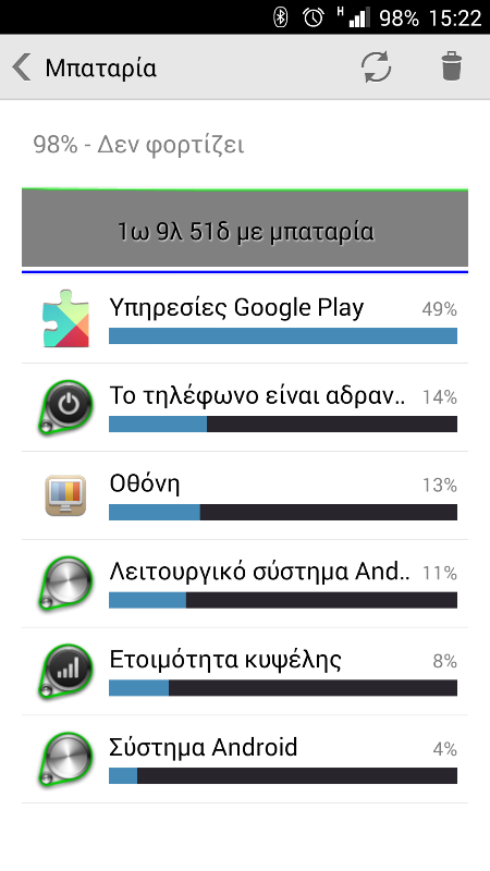Το φόρτισα 100% , έκανα ακριβώς ότι έλεγε το πρόγραμμα, μετά έκλεισα το gps , έκανα ξανά clear το log της μπαταρίας , το άφησα 1 ώρα και κάτι (χωρίς να το ακουμπήσω) με τα mobile data ανοικτά και ιδού τα αποτελέσματα :