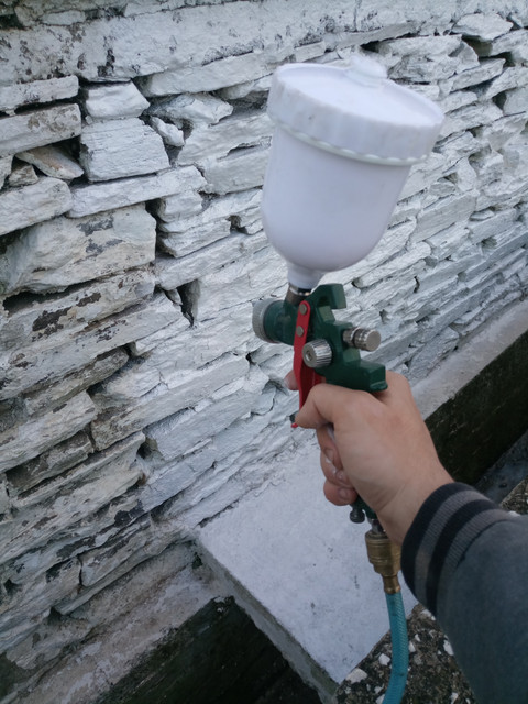 Σήμερα περάστηκε το πρώτο χέρι τσιμεντόχρωμα με το πιστολάκι HVLP του Lidl.