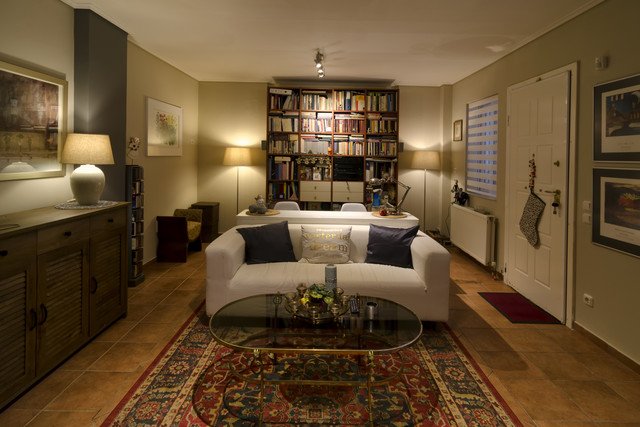 Ευχαριστω.Η βασική αλλαγή που έκανα ήταν η εξής : ενώ αρχικά τα έπιπλα ήταν όλα σε επαφή με τους τοίχους (καναπέδες κλπ) και κάθε λογής περισσευούμενα του σπιτιού ήταν όλα περιμετρικά βολεμενα, ο χώρος κατέληξε να γίνει μια αποθήκη που ήταν αδύνατον να κάτσεις, ούτε μπορούσε να καθαριστεί εύκολα ή να φρεσκαριστεί, ο φωτισμός ήταν κακός και τα κάδρα είχαν κρυφτεί απο άλλα πράγματα. Με τη νέα διάταξη, τα έπιπλα ειναι λίγα, οι τοίχοι ειναι ελεύθεροι, ο καναπές ειναι στην μέση και η βιβλιοθήκη προσβάσιμη εύκολα. Άνετα μπορούν 4 - 5 άτομα να καθίσουν ώρα. Ο χώρος μοσχοβολά απο τα καινούργια έπιπλα και φυσικά δεν θα προστεθεί πλέον το παραμικρό αντικείμενο