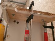 Τοποθέτησα με σφιγκτήρες το ΚΠ απο την μέσα πλευρά και τρύπησα την μελαμίνη με 8αρι τρυπάνι και εν συνεχεία μέσα απο την υπάρχουσα τρύπα με 6αρι τρυπάνι το ΚΠ