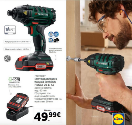 δεν εχω δει ακομη να χρησιμοποιει parκside. Ως συνηθως χρησιμοποιουν επωνυμα μηχανηματα.