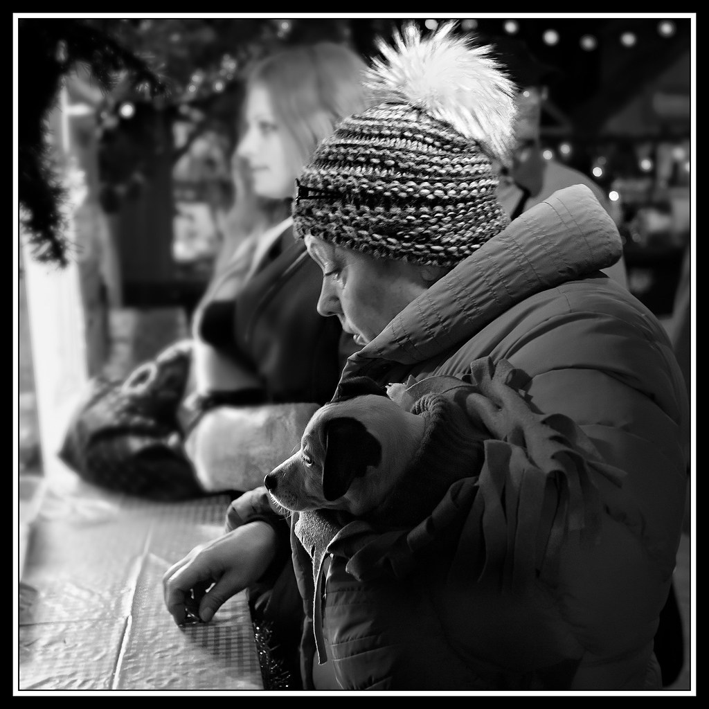 Μου εκανε εντυπωση που η γυναικα σκεπασε το σκυλακι να μην κρυωνει. Ζεστο στιγμιοτυπο μεσα στην ψυχρη αθλιοτητα.