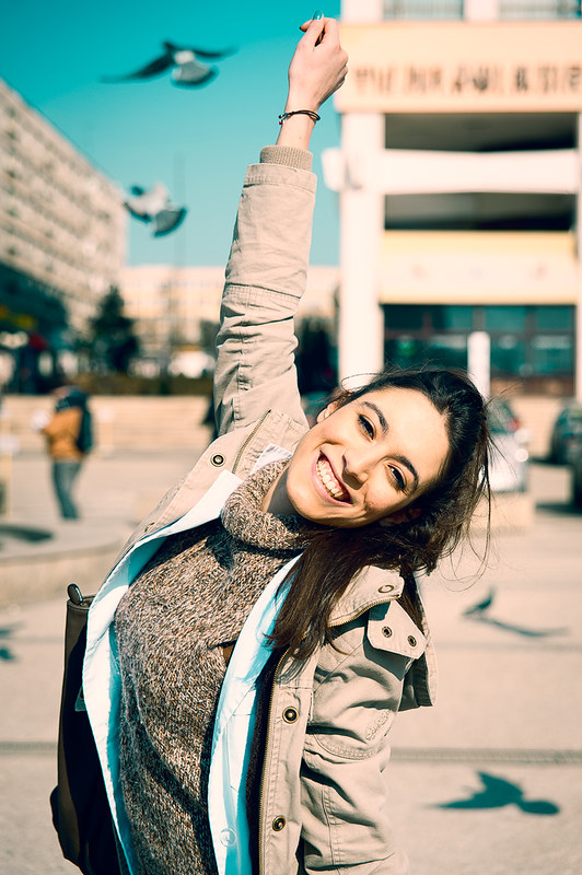 Πολύ καλή!!! Καλά αυτό με τα περιστέρια δεν υπάρχει... Δεν ξέρω αν ήταν σύμπτωση ή ηθελημένο, αλλά σημειολογικά η σύνθεση έχει πολύ ενδιαφέρον με την κοπέλα να απλώνει τα χέρια της όπως τα περιστέρια πίσω τα φτερά τους. Με τον 50αρη τέρμα ανοιχτό?