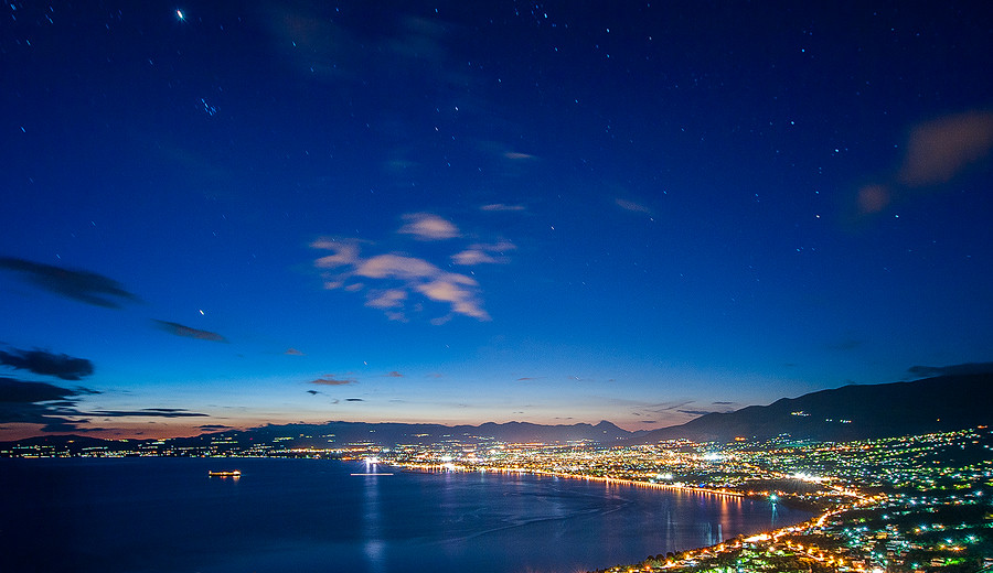 Για τα χρώματα, η λέξη blue hour νομίζω τα λέει όλα. Πολύ στενό το χρονικό παράθυρό της όμως. Να φανταστείς ότι μετά τη δεύτερη ακολούθησαν άλλες δύο λήψεις με μεγαλύτερες εκθέσεις (του λεπτού), αλλά είχε προλάβει να σκοτεινιάσει τόσο ελάχιστα, ώστε να κυριαρχήσει το κόκκινο σύννεφο και να χαλάσει η σούπα.