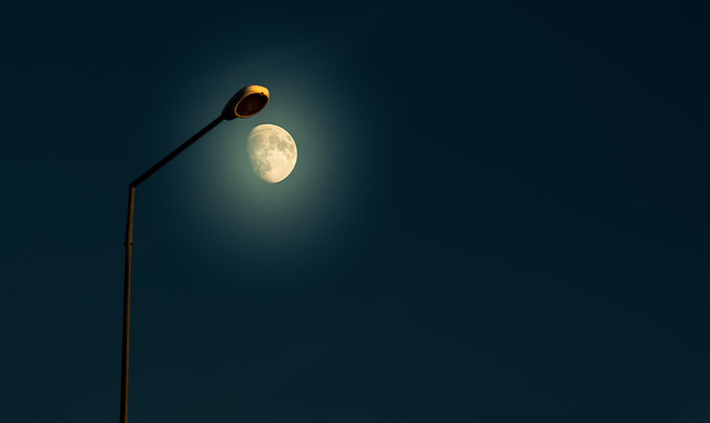 Κατά ένα παράξενο τρόπο κουμπώνει και μου αρέσει, ένα κλικ πιο κάτω από τη λάμπα να ήταν τα φωτεινά μαζί με το φεγγάρι θα ήταν τέλειο ,( καταλαβαίνω όμως ότι αυτό θα ήταν δύσκολο να συμβεί). Το νήμα που του ταιριάζει πιο πολύ πιστεύω είναι εδώ που το έφερα μιας και το φεγγάρι είναι το κυρίαρχο στοιχείο στο κάδρο.