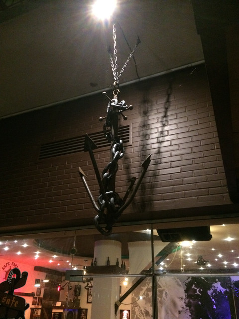Όπως το λες ακριβώς , με λίγα λόγια την αγκυρα την έβγαλα από το λιμάνι και αφού την καθάρισα από ότι μπορείς να φανταστείς που είχε κολλήσει επάνω πήρα μπίλιες και βεργες για να της φτιάξω τον πάνω σταυρό , λάμα να της φτιάξω τον πάνω κρίκο που έλειπε εντελώς και αφού έγινε καθαρό μέταλλο όλη να της δημιουργήσω τεχνητή σκουριά με ταμποναρισμα χάλκινου χρώματος και μετά πέρασμα με διάφανο βερνίκι για μέταλλα . Συνολικό βάρος μαζί με την αλυσίδα περί τα 100+ κιλά να ανέβουν και να κρεμαστούν-ζυγιστούν από 3 μεταλλικά ουπα φ14 .