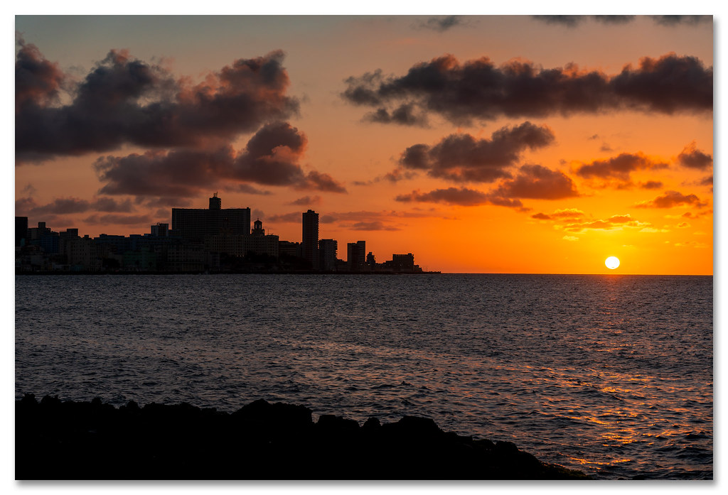 Μιας και έχω ξεκινήσει ήδη με φωτογραφίες από την Malecón, ας βάλω μία ακόμα με το ηλιοβασίλεμα. Στο βάθος φαίνεται το κτίριο FOCSA, το ψηλότερο της Κούβας με συνολικά 130m ύψος. Ταυτόχρονα βλέπουμε την περιοχή Vedado της Havana, μία από τις οικονομικά πιο ευκατάστατες περιοχές και δίπλα στην ακόμα πιο πλούσια Miramar.