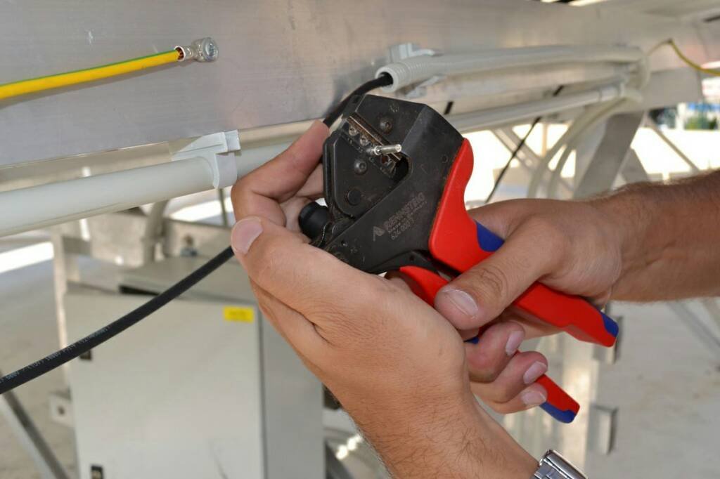 Ο σωστός τρόπος είναι με πρεσσα ειδική για φωτοβολταϊκά (και όχι κινεζια) αλλιώς να περιμένει σε λόγο καιρό ωραία πράγματα..... Δεν ξέρω που ακριβώς θα μπει αλλά στα δεκαρακια που εφτιαχνα εγώ το string ήταν 600-900volt που σημαίνει ότι δεν είναι για έλα μωρέ θα το πατήσω εγώ με την πενσα κτλ.