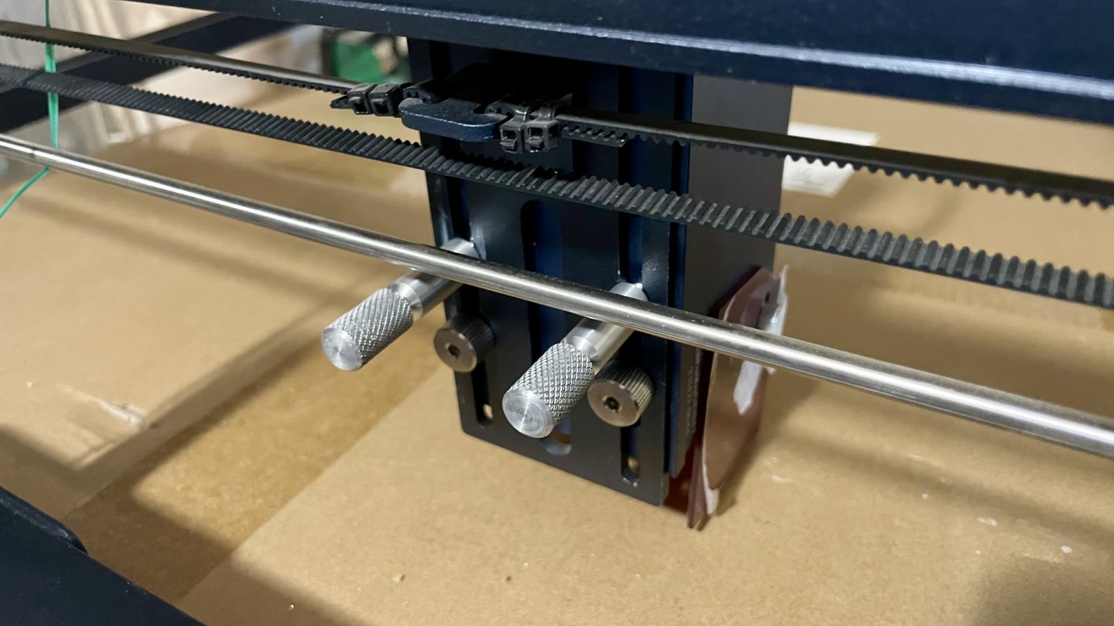 Για να λύσω το «πρόβλημα» και να κάνω και τη ζωή μου πιο εύκολη έκανα αυτό που έχουν κάνει πολύ χρήστες με παρόμοιο πρόβλημα. Έφτιαξα άλλες βίδες σε μεγαλύτερο μήκος ώστε να τις βρίσκω πολύ εύκολα και να μην ψαχουλεύω συνεχώς κάτω απ’τους άξονες, με ότι αυτό σημαίνει σε εκνευρισμό και μετακίνηση του laser.