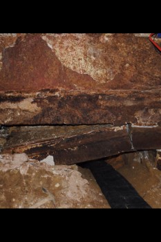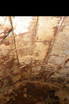 Η θόλος του θαλάμου δείχνει να βρίσκεται σε κατάσταση οριακής ισορροπίας, (φωτο 8) με τους θολίτες στην περιοχή της στέψης να παρουσιάζουν άνοιγμα αρμών, σε ικανό βάθος, από την εσωτερική επιφάνειά της. Στο σύνολο σχεδόν των θολιτών παρατηρούνται ρηγματώσεις και επιπλέον σε εκτεταμένες περιοχές, εκατέρωθεν της στέψης, διαπιστώθηκε σημαντική απώλεια μάζας του υλικού. (φωτο 9)