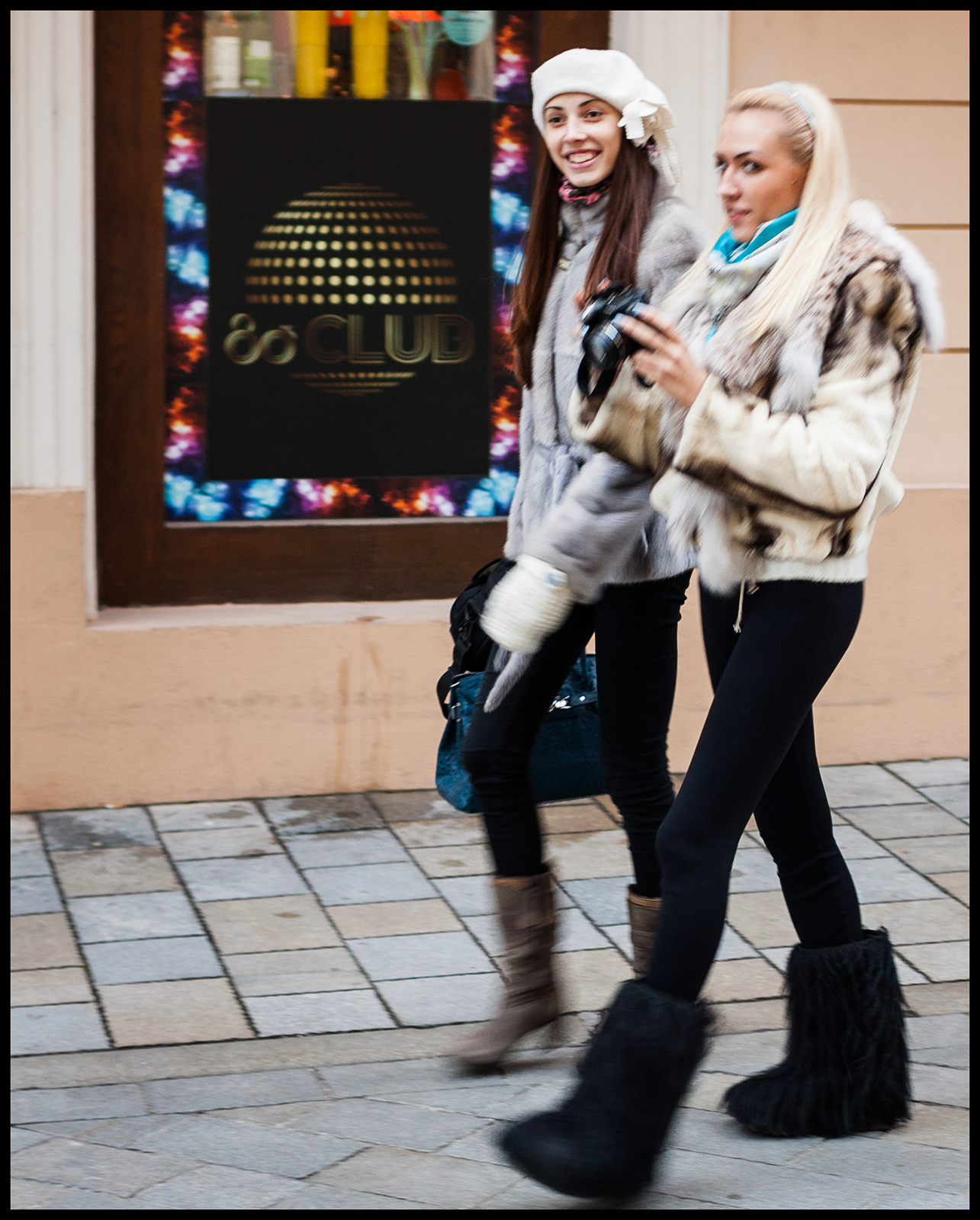 Ρωσσιδουλες, απολαμβανουν την ημερησια βολτα τους στην πολη, απο το χιονοδρομικο κεντρο οπου περνανε τις διακοπες τους...