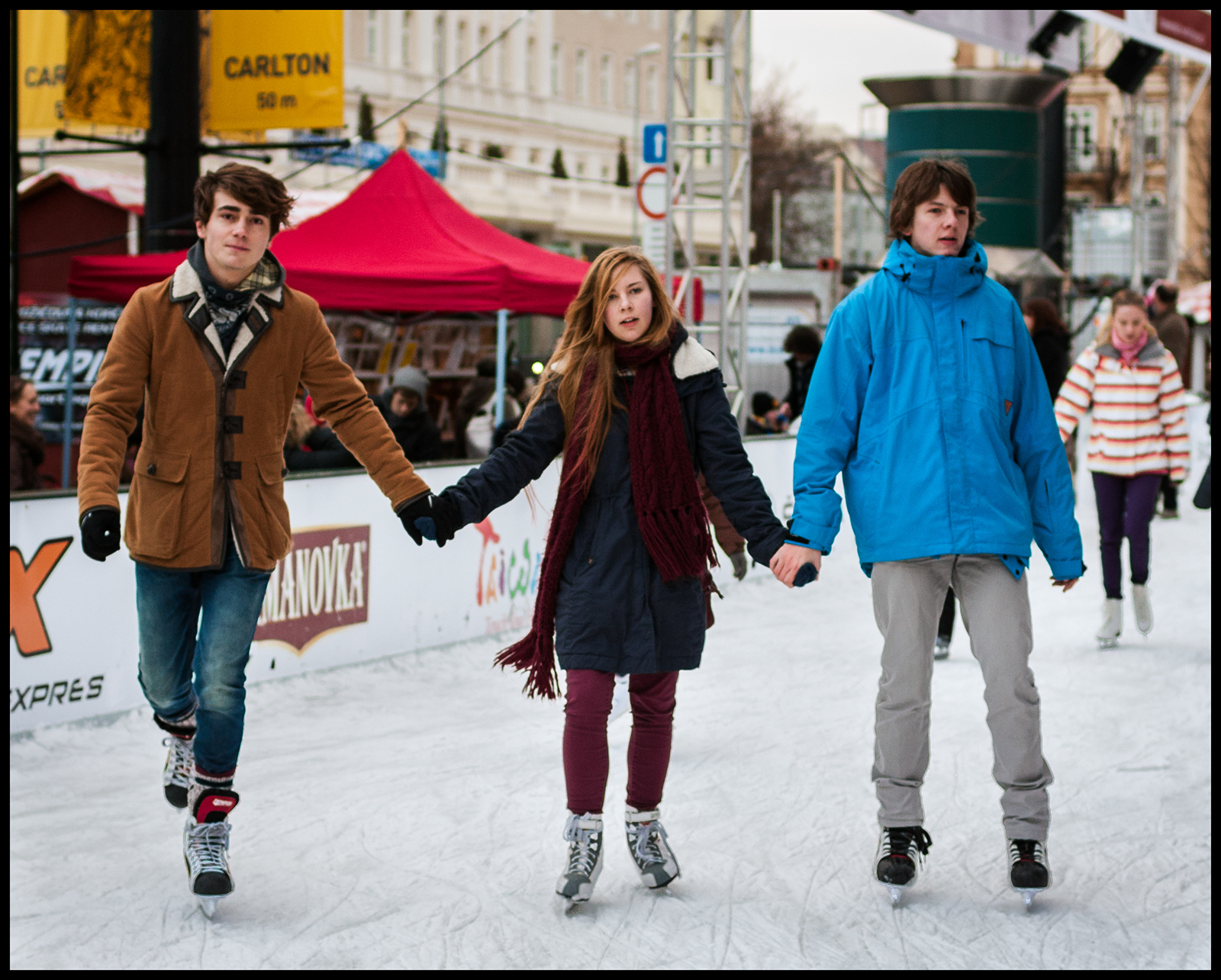 Σλοβακοι, διασκεδαζουν στο δωρεαν παγοδρομιο της πολης...