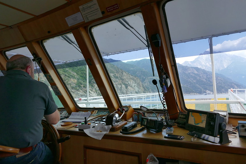 απλώς να σημειώσω ότι οι εν πλώ (5 και 6) η πρώτη είναι όψη από τη μονή Δοχειαρίου και η δεύτερη από τα Κατουνάκια, το πιο νότιο σημείο που πιάνει το καράβι, μια σσκήτη πάνω στα βράχια, στην άκρη του Άθω.