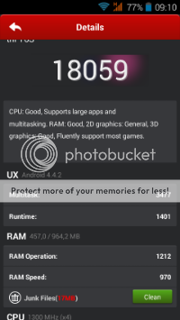 Από την εκκίνηση του κινητού η 4.4.2 ξοδευει μολις τα 288mb από το 1gb ram και με επιπλέον launcher τον Nova , ανοικτα gps, καμερα και ένα συνολο 18 εφαρμογών σε συνεχή λειτουργία η δεσμευμένη μνημη δεν ξεπερνά τα 550Mb .