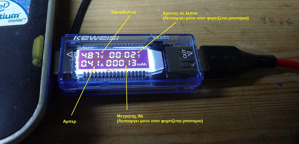 Eδω τα στοιχεια που δινει καθως φορτιζει ενα κινητο απο θυρα USB ενος laptop