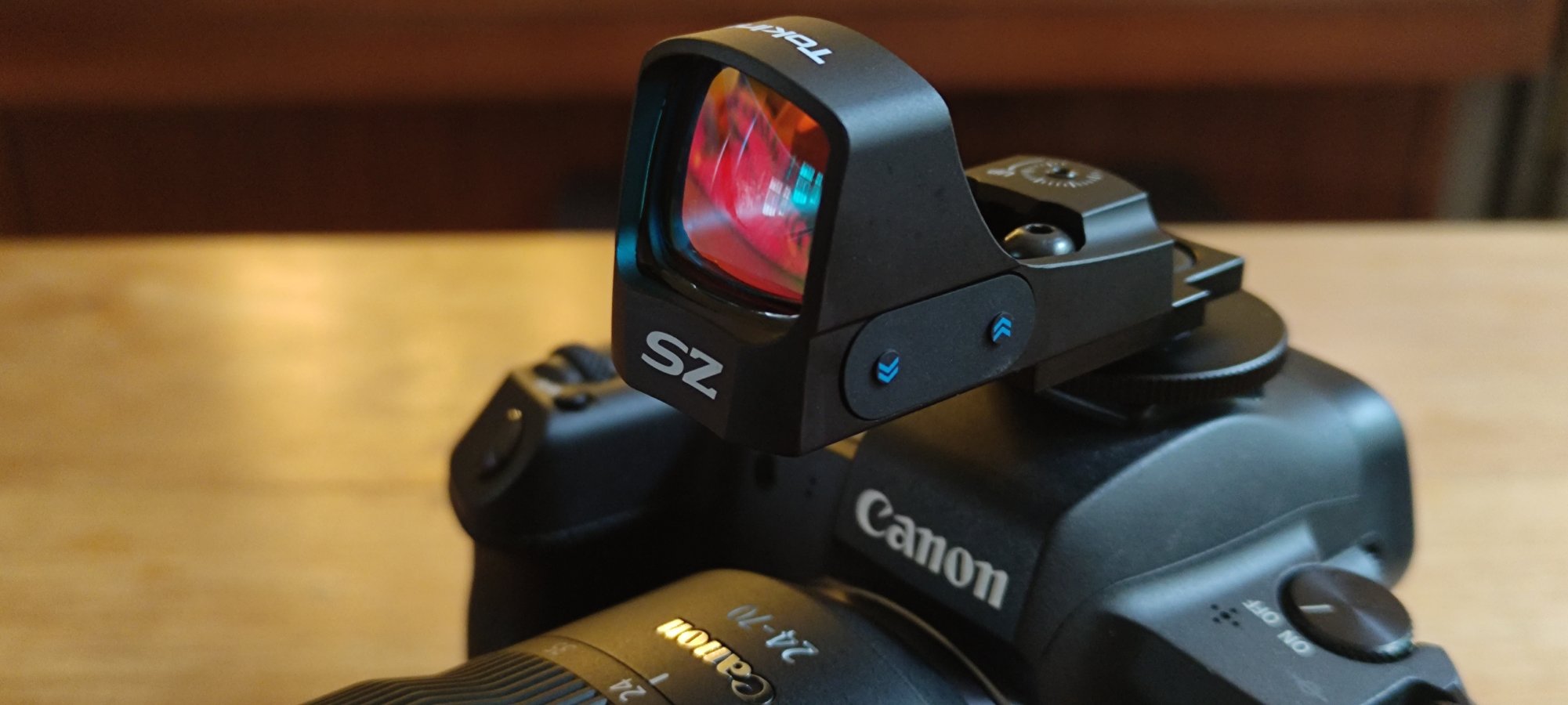 Το red dot που εχει ακριβως οπως τα σκοπευτρα πυροβολων οπλων εχει ρυθμιζομενη ενταση για να μην ενοχλει και να ρυθμιζεται ακριβως στις απαιτησεις του φωτογραφου και τις συνθηκες. Το οπτικο του κομματι ειναι εξαιρετικης ποιοτητας μενει να το δουμε στο πεδιο πλεον.