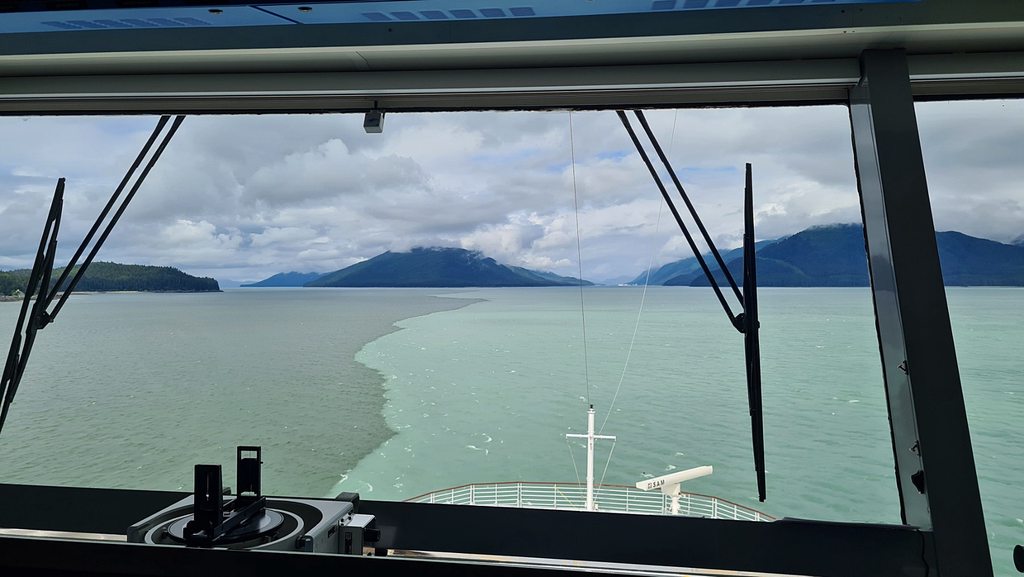 Tα νερα των παγετωνων (δεξια) συναντουν τα νερα του Ειρηνικου ωκεανου. Αλασκα.