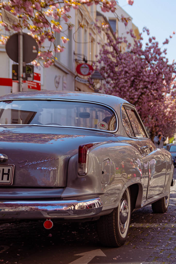 Οι 2-3 εβδομάδες τον χρόνο που ανθίζουν οι κερασιές, αποτελούν για τη Βόννη ένα αρκετά σημαντικό τουριστικό γεγονός. Επομένως όλοι όσοι έχουν το ψώνιο με τα αυτοκίνητα (και γενικότερα), κάνουν βόλτες με ότι "αντίκα" μπορεί να διαθέτει ο καθένας ώστε να πολυφωτογραφηθούν. Το δύσκολο σε αυτήν την περίπτωση θα έλεγα πως δεν είναι το να πετύχεις το σωστό αμάξι, αλλά το να καταφέρεις να μην βγάλεις και όλους τους φωτογράφους ταυτόχρονα!Πού το πέτυχες, το "Μπόργκαρντ" του κουτιού;