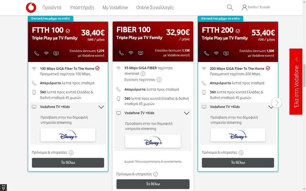 Στο σάιτ της Vodafone το μόνο που βρήκα ήταν αυτό. Δηλαδή μόνο για 100 και 200 Mbps δίνεται σύμφωνα με αυτό, στα giga fiber γράφει μόνο για το Disney+ προς το παρόν https://www.vodafone.gr/eshop/vodafone-home/super-fiber/c-120127/