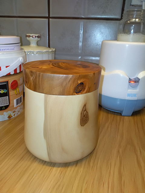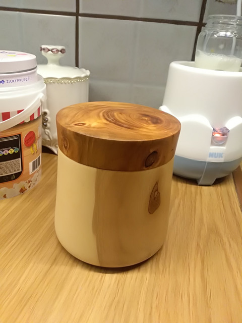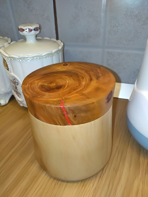 Σώμα βάζου απο νεροπλάτανο ή πλάτανο δασικό όπως τον λένε στα μέρη μου και καπάκι απο κερασιά.