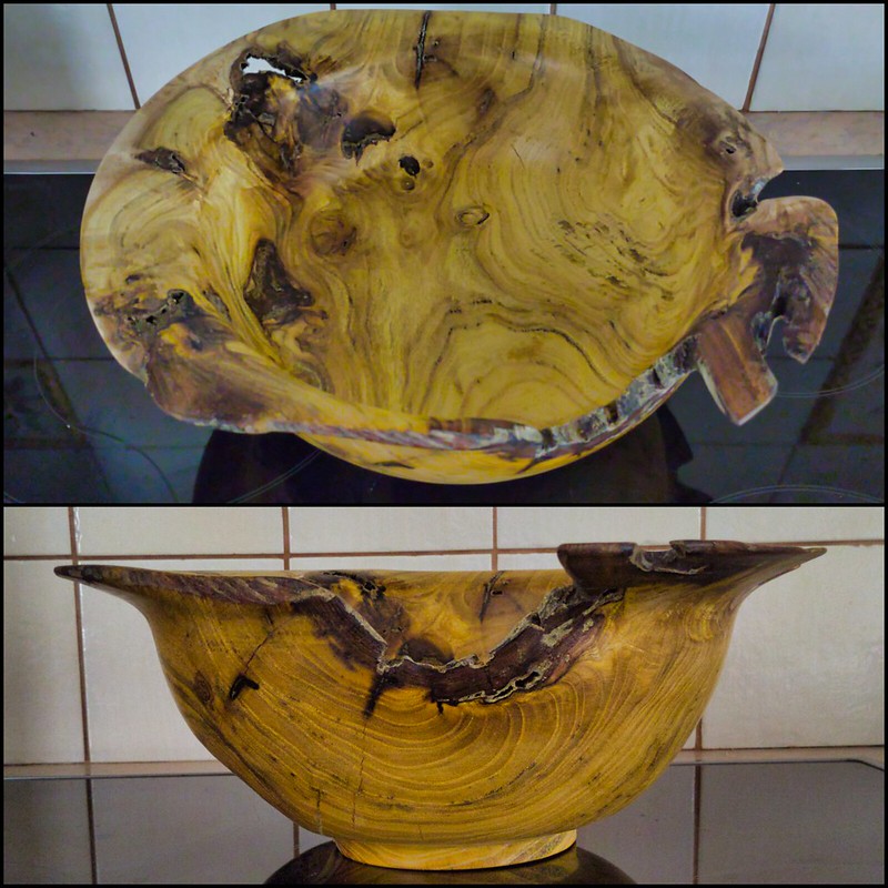 Σ' αυτά του είδους τα ξύλα ο βαθμός δυσκολίας και επικινδυνότητας είναι μεγάλος. Το βλέπεις έτσι σάπιο και βαρύ και λες θα αυτοκτονήσω σήμερα. Αλλά σε τραβάει η πρόκληση. Το συγκεκριμένο το βάζω στο 8. Θα το έβαζα στο 9 αν συνέχιζα κι άλλο το σκάψιμο. Έχει όμως ένα βαθούλωμα προς τον πάτο και δεν ήθελα να δημιουργήσω κι άλλη τρύπα χαμηλά.Αυτο το μισοκατεστραμμενο τεμαχιο ξυλου που εδωσε τελικα ζωη σε αυτο το θαυμασιο εργο τεχνης, τι βαθμο δυσκολιας εχει στο γυρισμα στον τορνο?